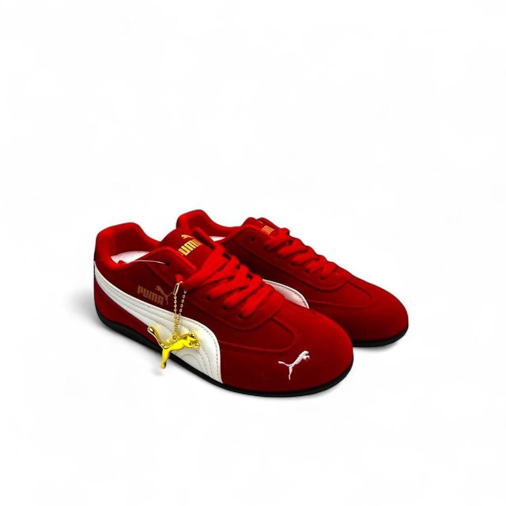 • يتميز الحذاء بتصميم أنيق يعكس روح السرعة والقوة، مستوحى من أحذية سباق السيارات، ليمنحك إطلالة رياضية أنثوية فاخرة تناسب مختلف الأذواق العصرية.